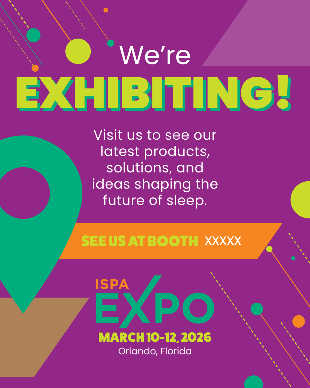 We’re exhibiting at #ISPAEXPO 2026! 🎉 Join us at Booth [#] to discover our newest products, solutions, and ideas shaping the future of sleep. We can’t wait to see you in Orlando, March 12–14! Register now: ispaexpo.com